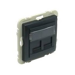 TAPA C/SOPORTE PARA DOS CONECT RJ45 NEGRA MATE